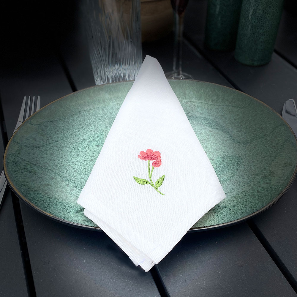 Vi præsenterer en lidt mere bæredygtig løsning til din borddækning – broderede stofservietter, der kan anvendes mange gange. Vores broderede stofservietter tilbydes med forskellige motiver, som du kan se på billederne herunder.